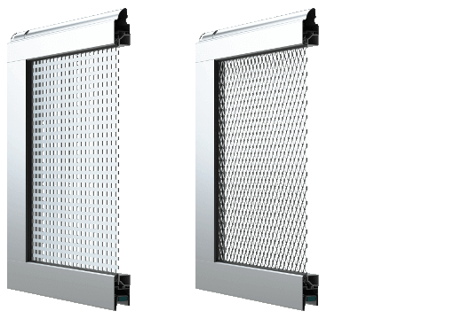 Au choix : Tôle perforée, grillage en aluminium, simple ou double vitrage.